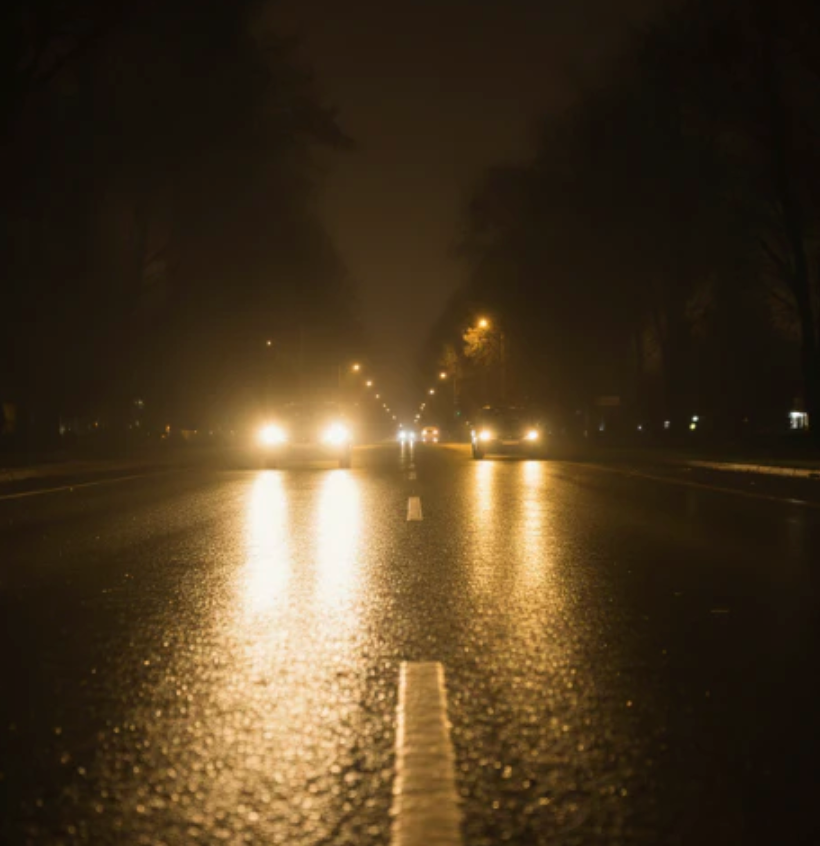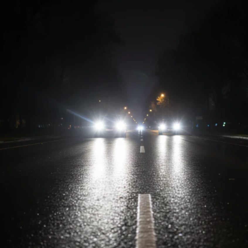 In het donker kunnen de koplampen van tegemoetkomende auto's een intense schittering veroorzaken, waardoor het moeilijk wordt om de weg goed te zien. Elke rit wordt een uitdaging.